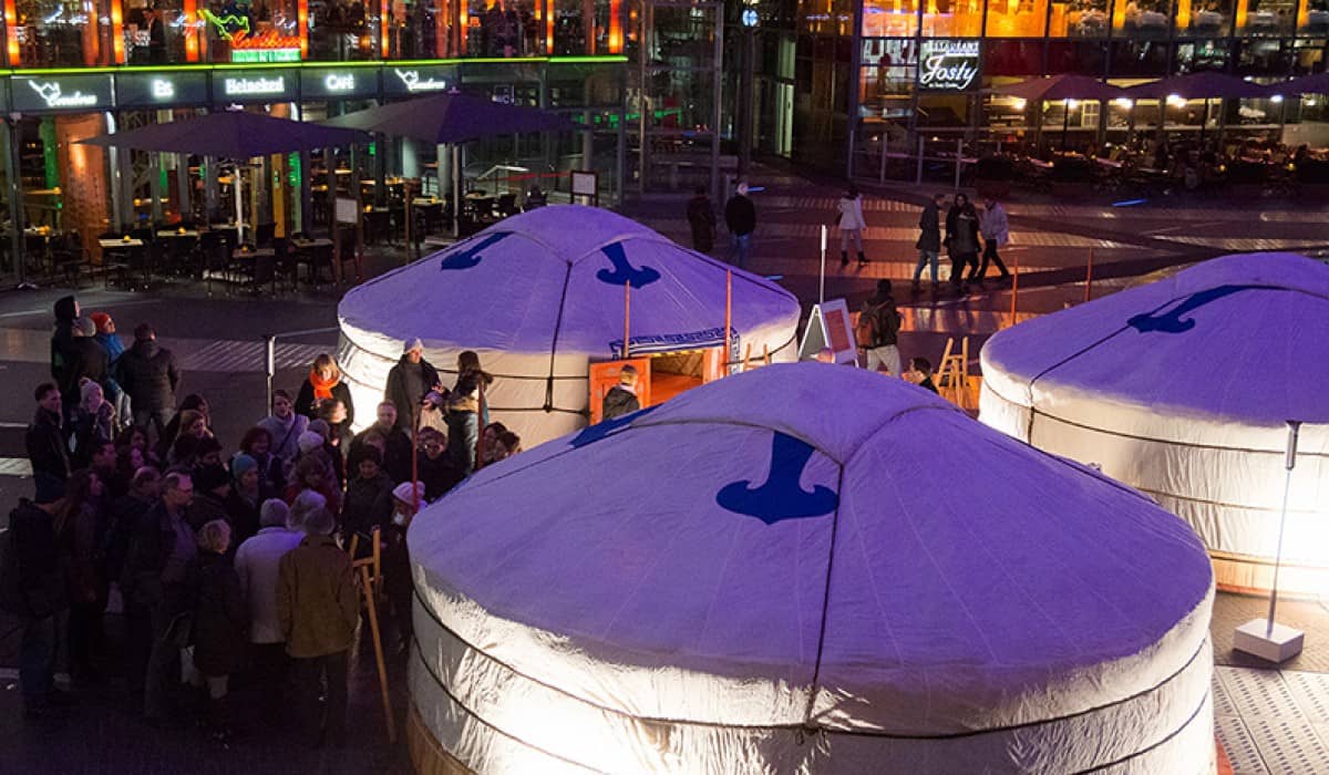 Vom 17. bis 20. Januar 2019 können literaturbegeisterte Berliner und Besucher in gemütlich-warmen mongolischen Zelten aus Holz und Filz »Geschichten in Jurten« erleben. Das Sony Center lädt bereits zum 18. Mal zu Lesungen mit 30 Autoren ein, diesmal zum Thema »Communities – Roots and Change«. Die Autor*innen machen sich auf die Suche nach Antworten und schreiben von ihren Erfahrungen, ihren Ideen und Beobachtungen. Gelesen wird immer zur vollen Stunde und 30 Minuten lang aus aktuellen Büchern. Donnerstag- und Freitagvormittag sind die Jurten für Schüler und Kitakinder reserviert. Die Jurten-Spezial-Nacht am Sonntag widmet sich ausschließlich hervorragenden Debütromanen.
