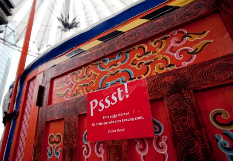 Seit 2002 haben sich die »Geschichten in Jurten« als eine feste Größe im Berliner Kulturleben etabliert. Jedes Jahr im Januar wird das Sony Center am Potsdamer Platz zu einer ungewöhnlichen Lesebühne. Inmitten des kalten Berliner Winters laden zwei gemütlich warme, original-mongolische Jurten zu insgesamt 100 Lesungen zu jährlich wechselnden Themen. Auf dem Programm stehen Bücher von insgesamt bis zu 35 Autoren aus den Genres Sachbuch, Roman, Erzählungen, Lyrik, Kinder- und Jugendbuch.